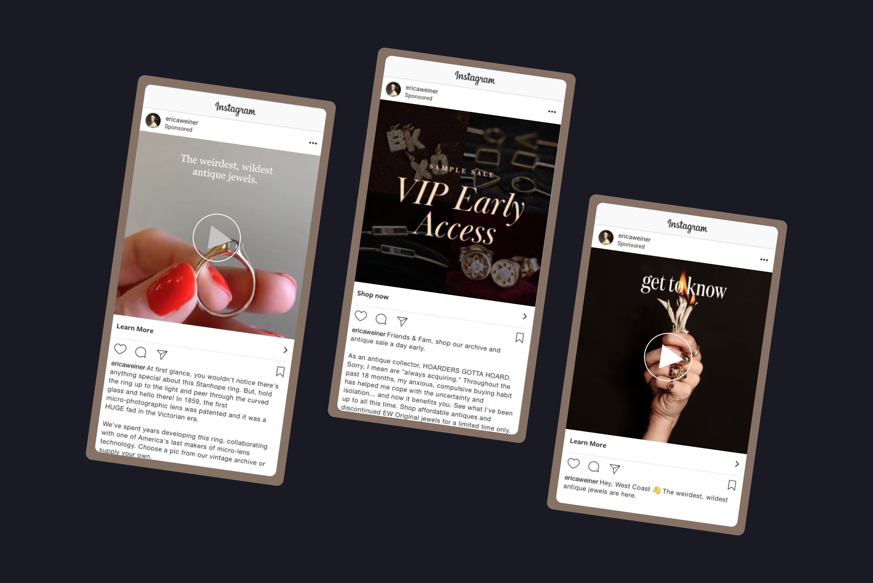 We created an advertising strategy leveraging the strength of EWJ’s existing customer base to find new prospective shoppers on Instagram with an interest in high-end vintage jewelry.